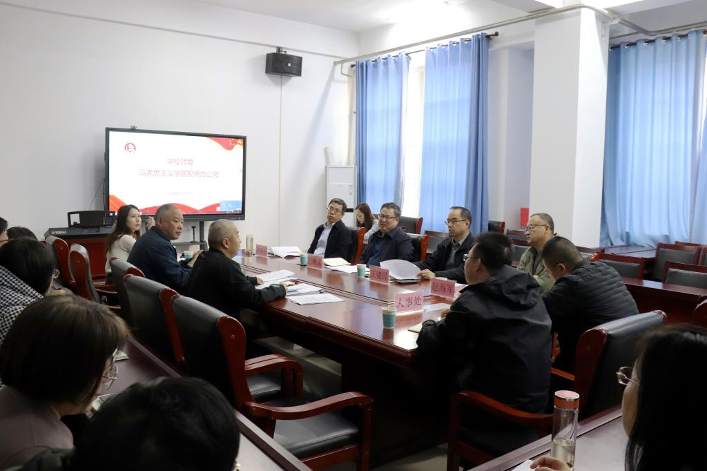 校领导认真听取学院关于思政课教师队伍建设和专项整改工作的汇报,对学院思政课教师队伍建设取得的成效给予充分肯定。
