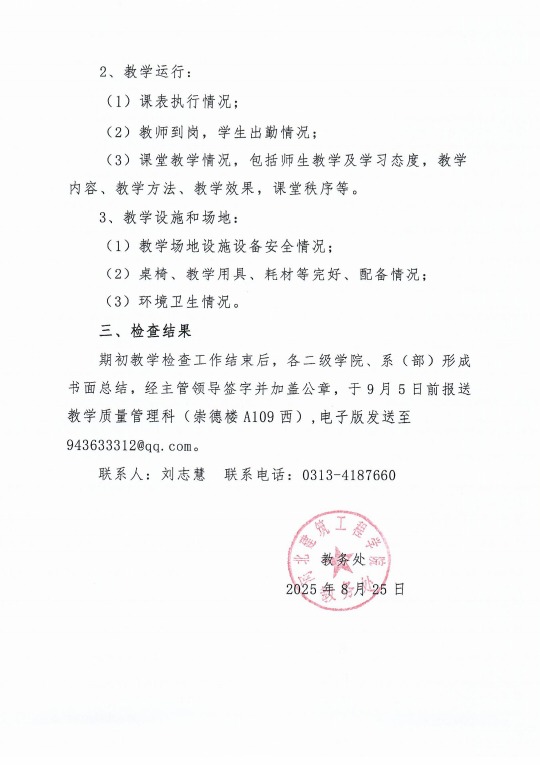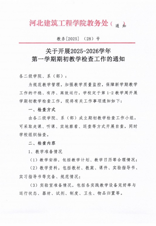 关于开展2025-2026学年第一学期期初教学检查工作的通知