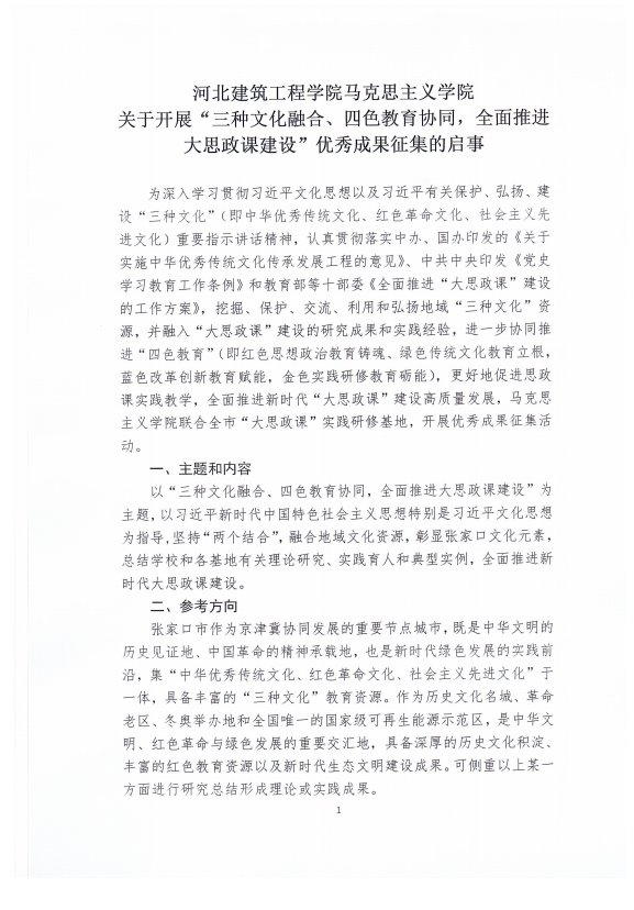 关于开展“三种文化融合、四色教育协同,全面推进大思政课建设”优秀成果征集的启事