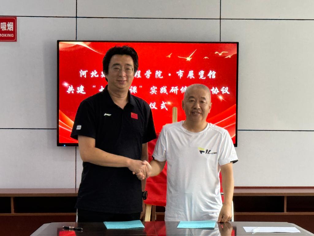 参观结束后,双方举行基地签约仪式。党委宣传部部长王喜明、买球赛十大平台经理张文海、张家口市展览馆馆长崔宇、办公室主任王梓及思政课教师代表参会。张文海介绍校院发展概况与思政课建设特色成效,指出学校高度重视“大思政课”建设,此次共建是整合红色资源、创新思政教育形式的重要举措,未来将依托基地开展研学实践与课题研究等活动,让员工在“大思政课”实践中坚定理想信念、厚植爱国情怀。
